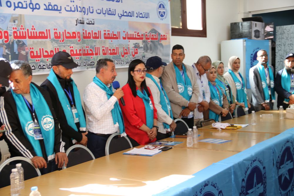عقد الاتحاد المحلي لنقابات الاتحاد المغربي للشغل بتارودانت، يوم أمس الأحد 16 نونبر 2025، بقاعة الخزانة البلدية، مؤتمره الرابع تحت شعار: “نعم لحماية مكتسبات الطبقة العاملة ومحاربة الهشاشة ومواصلة النضال من أجل العدالة الاجتماعية والمجالية”.