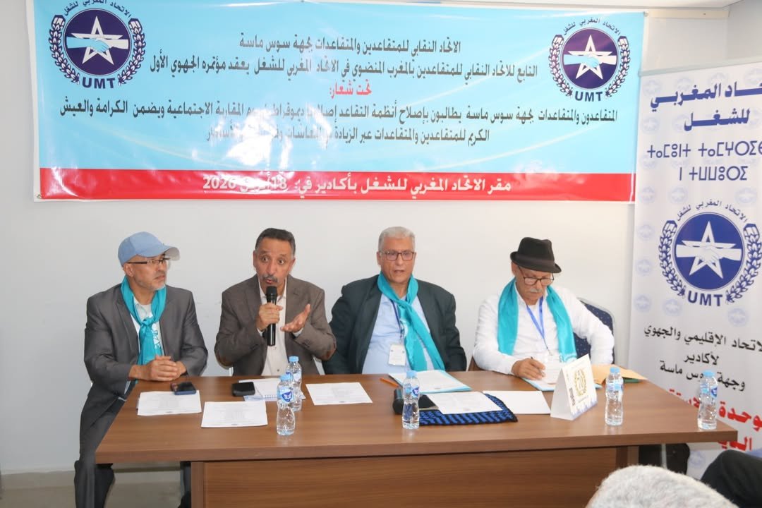 احتضن مقر الاتحاد المغربي للشغل بمدينة أكادير، يوم السبت 18 أبريل 2026، أشغال المؤتمر الجهوي الأول للاتحاد النقابي للمتقاعدين والمتقاعدات بجهة سوس ماسة، المنضوي تحت لواء الاتحاد المغربي للشغل، وذلك في سياق دينامية تنظيمية تروم تأطير فئة المتقاعدين والدفاع عن قضاياها الاجتماعية والاقتصادية.