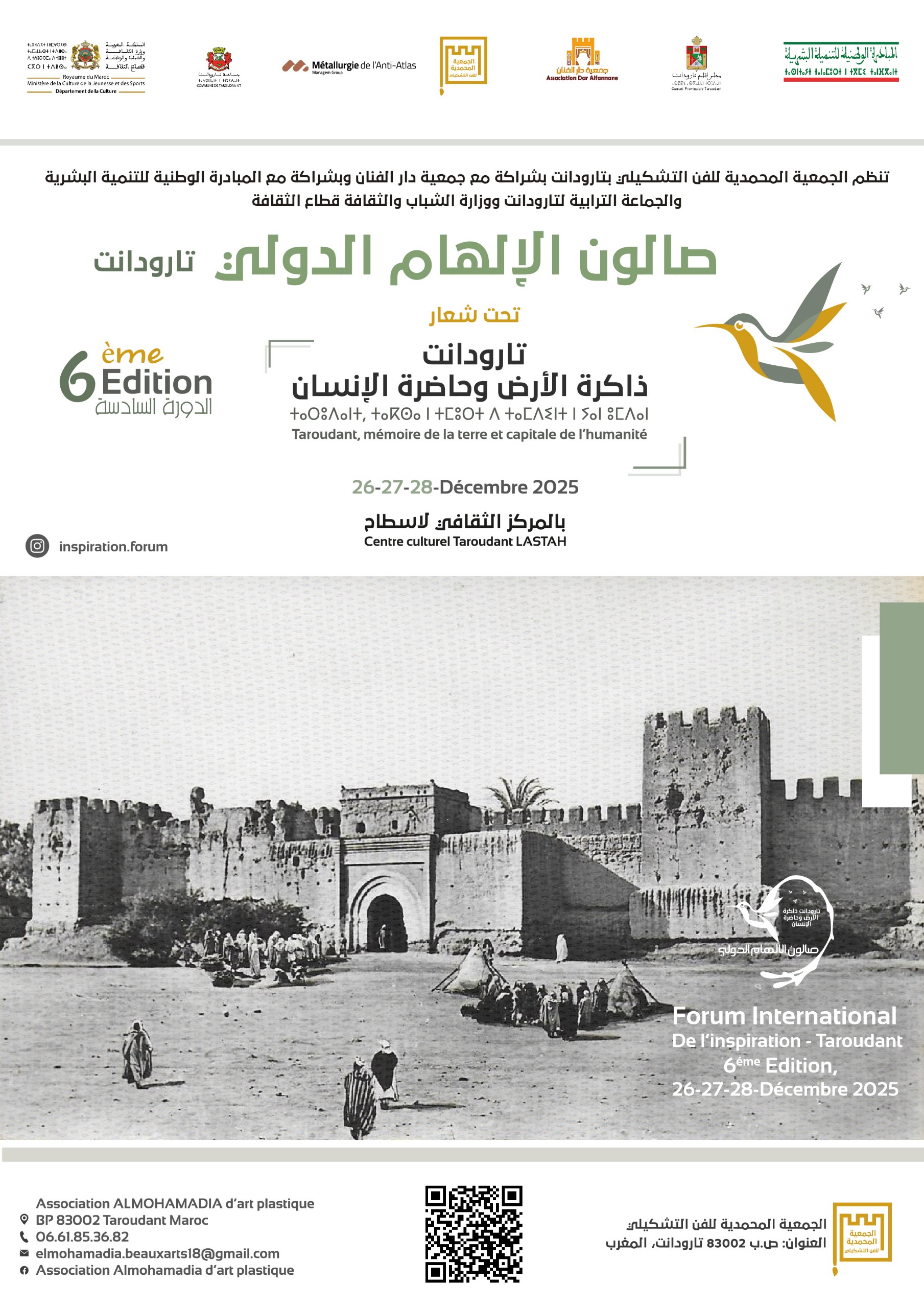 تحت شعار “تارودانت: ذاكرة الأرض وحاضرة الإنسان”، تحتضن مدينة تارودانت فعاليات صالون الإلهام الدولي في دورة نوعية تهدف إلى ترسيخ مكانة المدينة كفضاء للإبداع وحاضنة للطاقات، وجسر يربط بين الذاكرة الجماعية والتحولات المعاصرة.