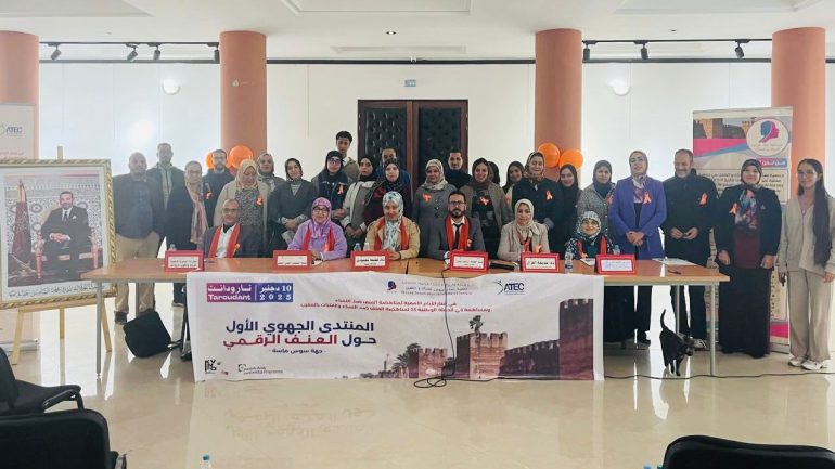 نظمت جمعية نساء سوس للمرأة والطفل، اليوم الأربعاء 10 دجنبر 2025 بالمركز الثقافي لتارودانت، المنتدى الجهوي الأول حول العنف الرقمي، وذلك في إطار الأيام الأممية لمناهضة العنف ضد النساء، وضمن فعاليات الحملة الوطنية الـ23 لمناهضة العنف ضد النساء والفتيات بالمغرب.
